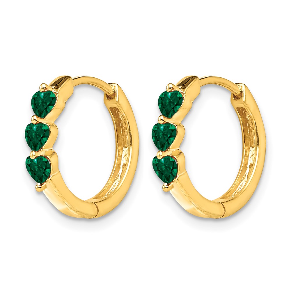 14k 3mm Heart Lab Created Emerald Polished Hinged Hoop Earrings