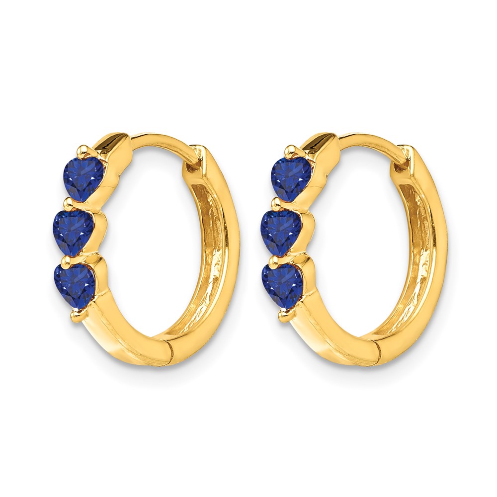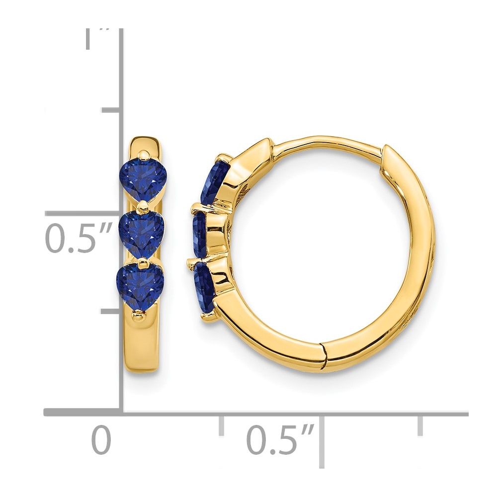 14k 3mm Heart Lab Created Sapphire Polished Hinged Hoop Earrings