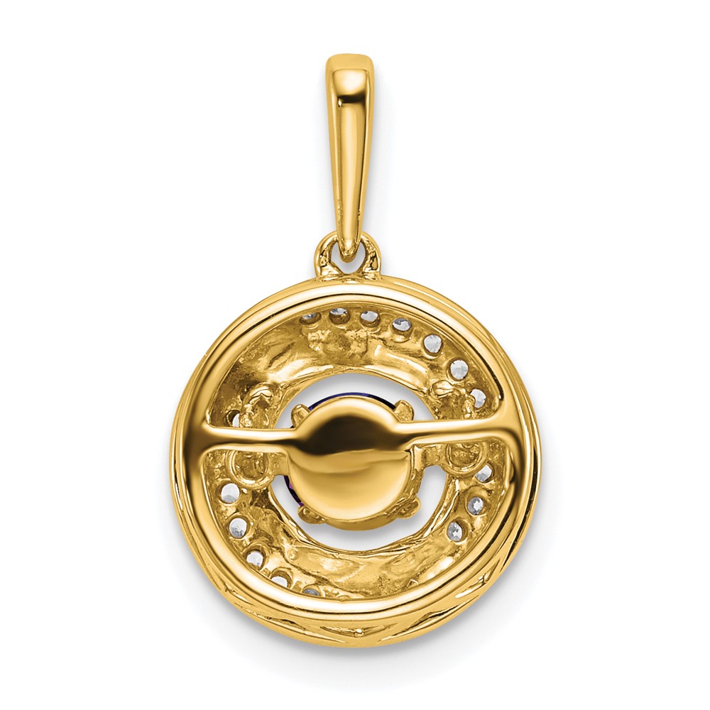 14k 4.5mm Round Moving Vibrant Amethyst and Diamond Pendant