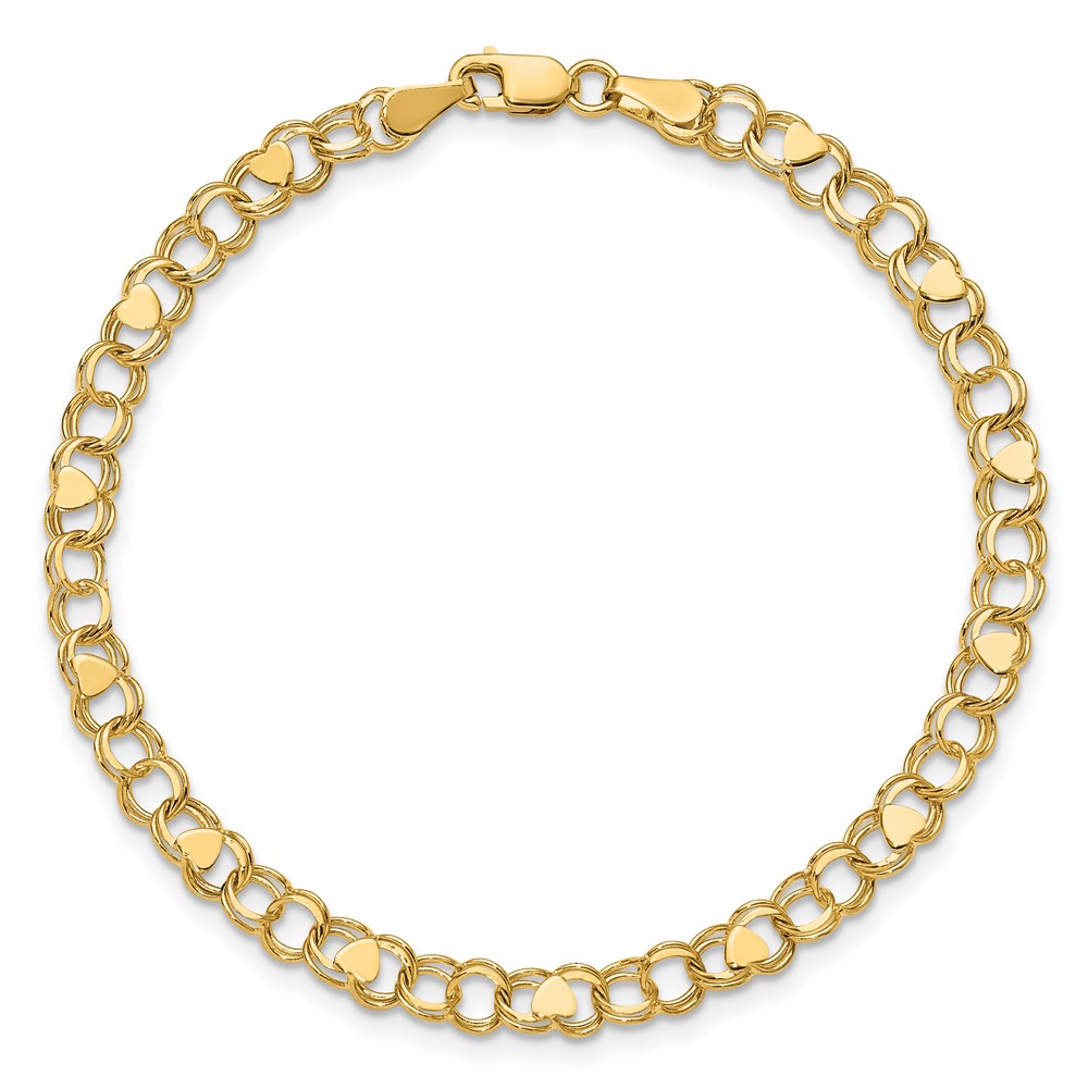 14k Polished Double-Sided Heart Solid 4mm Double Link Charm Bracelet