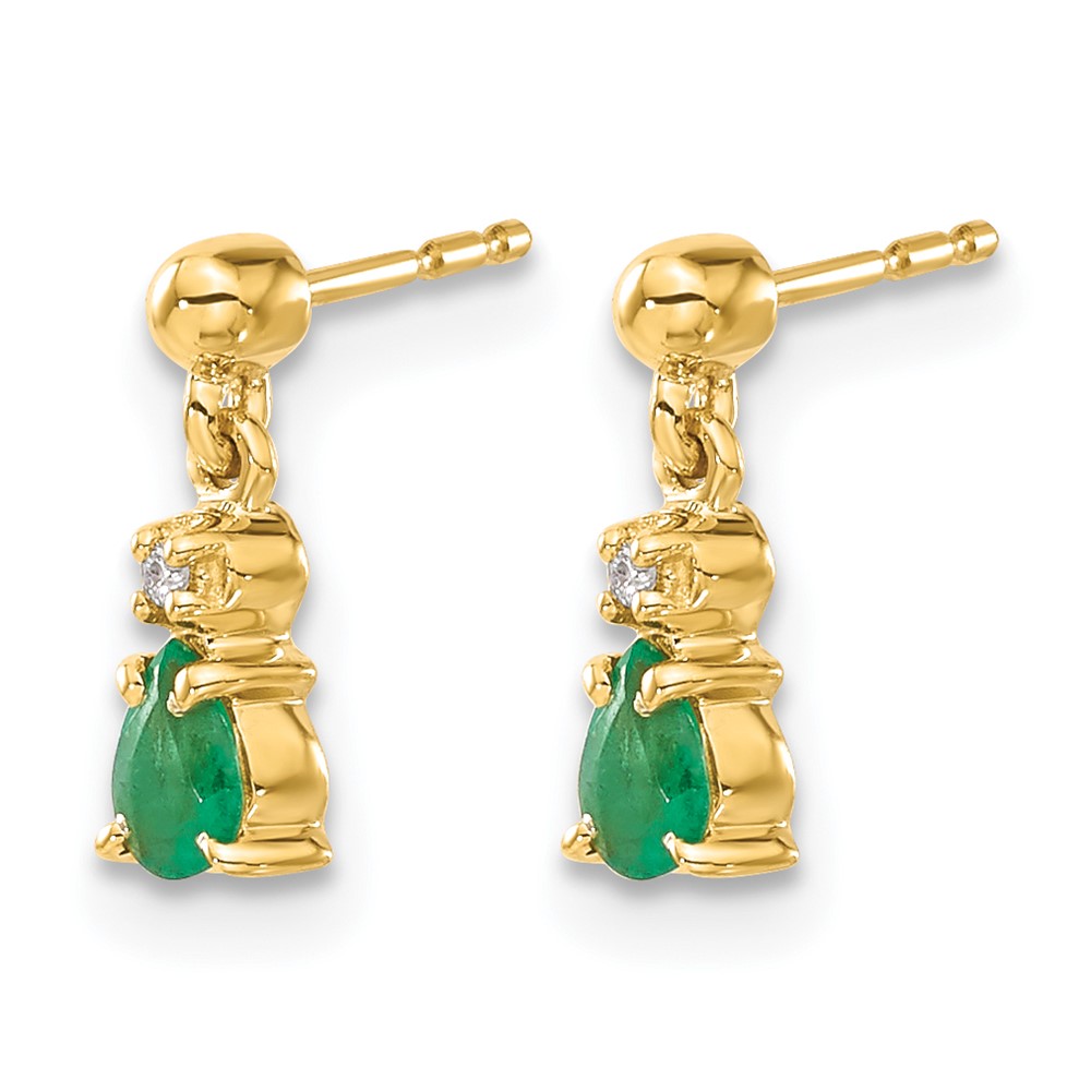 14k 4x3mm Pear Emerald and Diamond Dangle Post Earrings