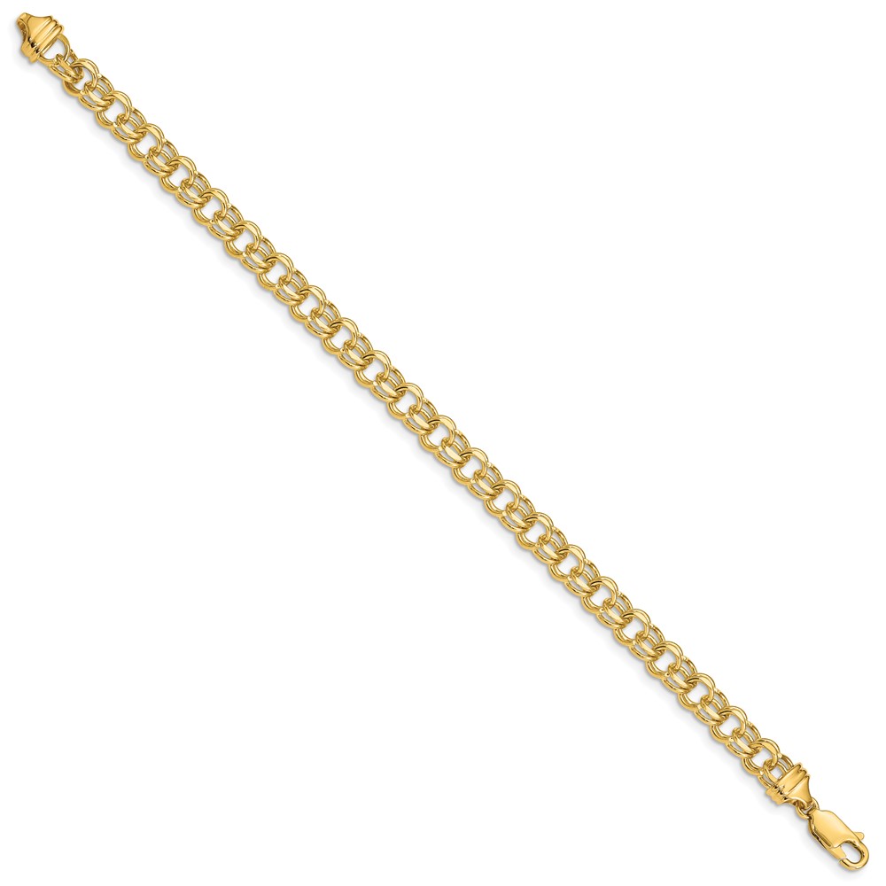 14k 5.5mm Diamond-cut Solid Heavy Double Link Charm Bracelet