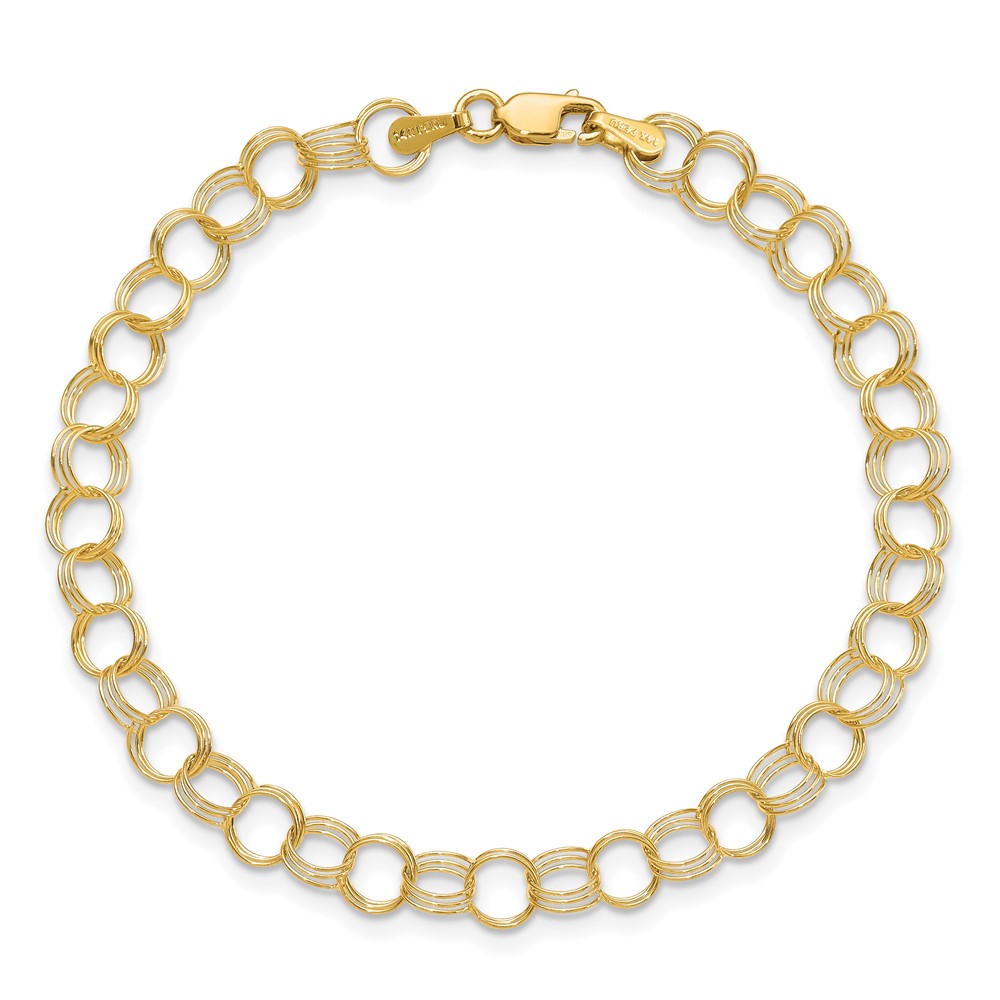 14k 6mm Solid Triple Link Charm Bracelet