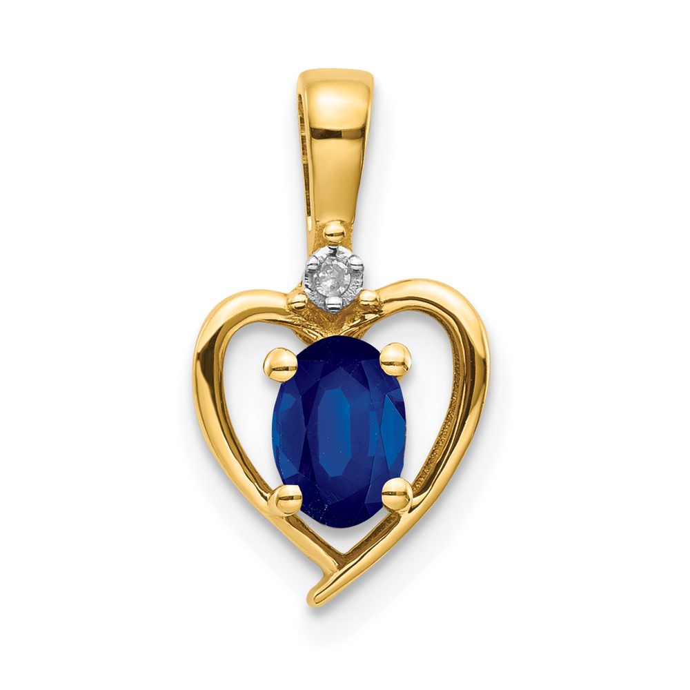 14k 6×4 Oval September/Sapphire and Diamond Heart Pendant
