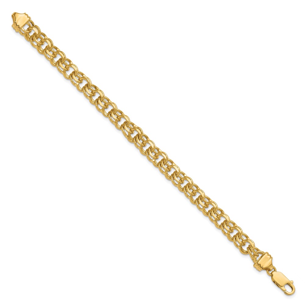 14k 7.5mm Diamond-cut Solid Heavy Double Link Charm Bracelet