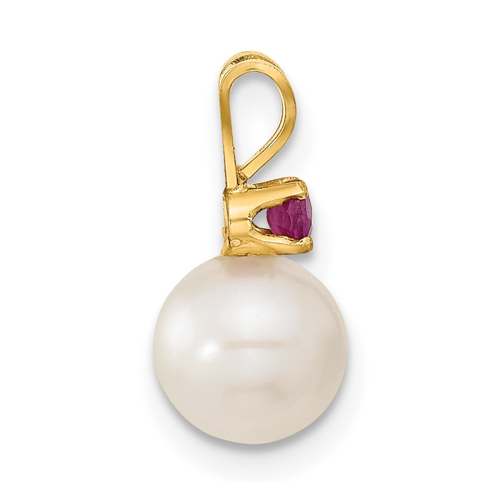 14k 7-8mm White Round Freshwater Cultured Pearl and .30RU Ruby Post Earrings and Pendant Set