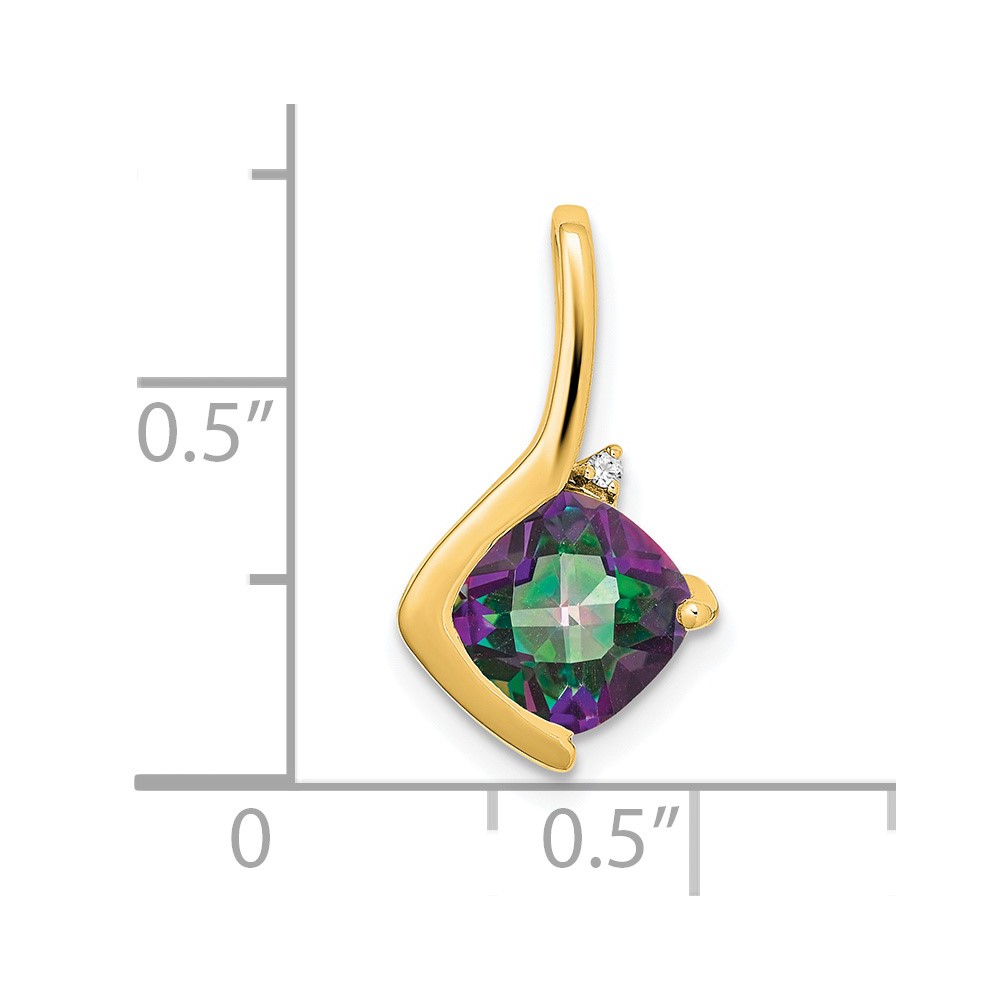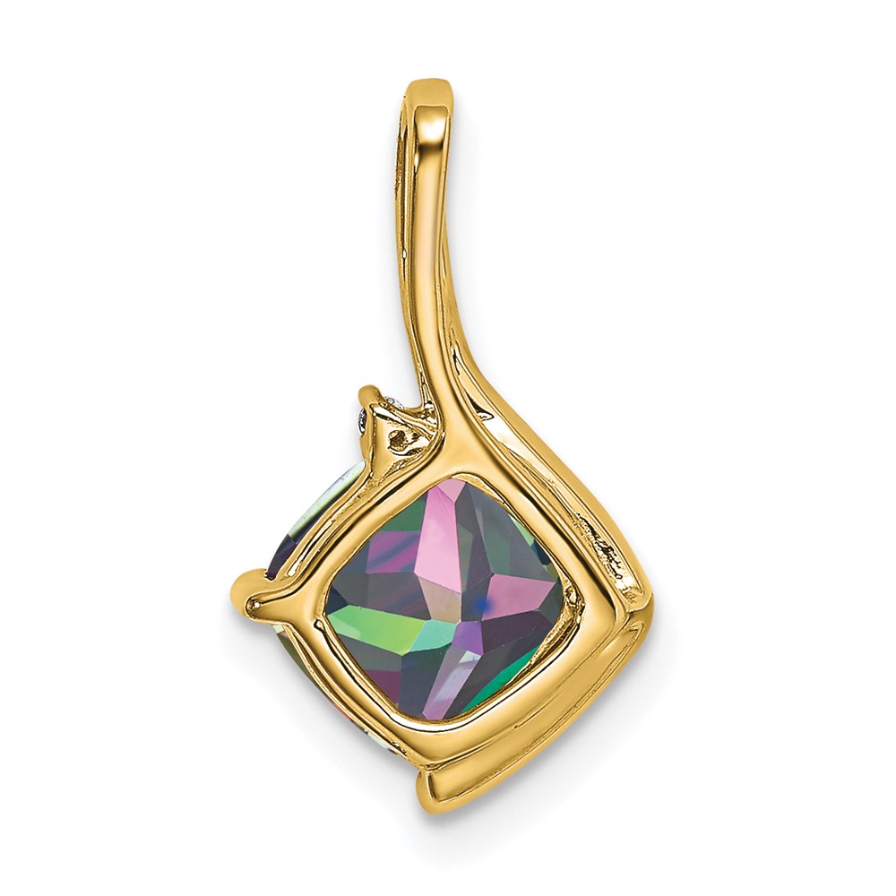 14k 7mm Cushion Mystic Fire Topaz and Diamond Pendant