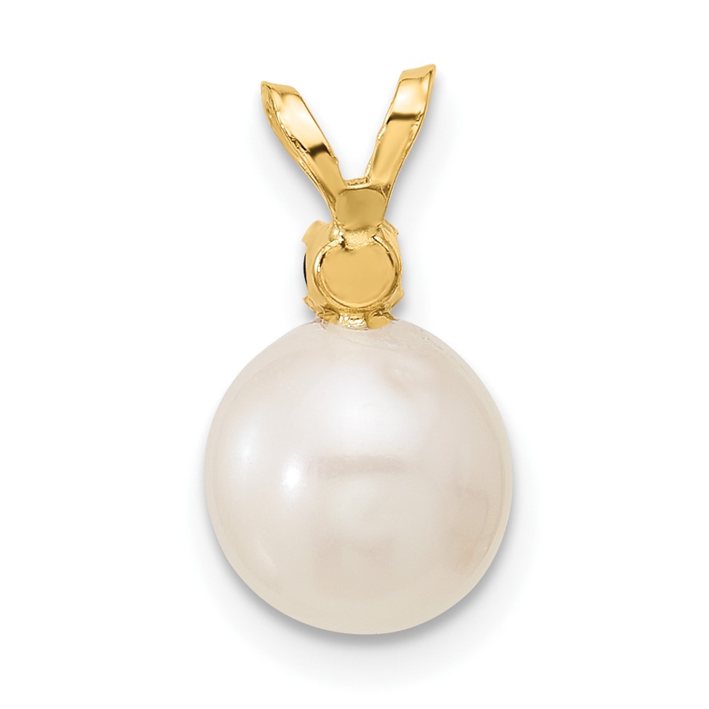 14k 8-8.5mm White Round Freshwater Cultured Pearl and .09SA Sapphire Pendant