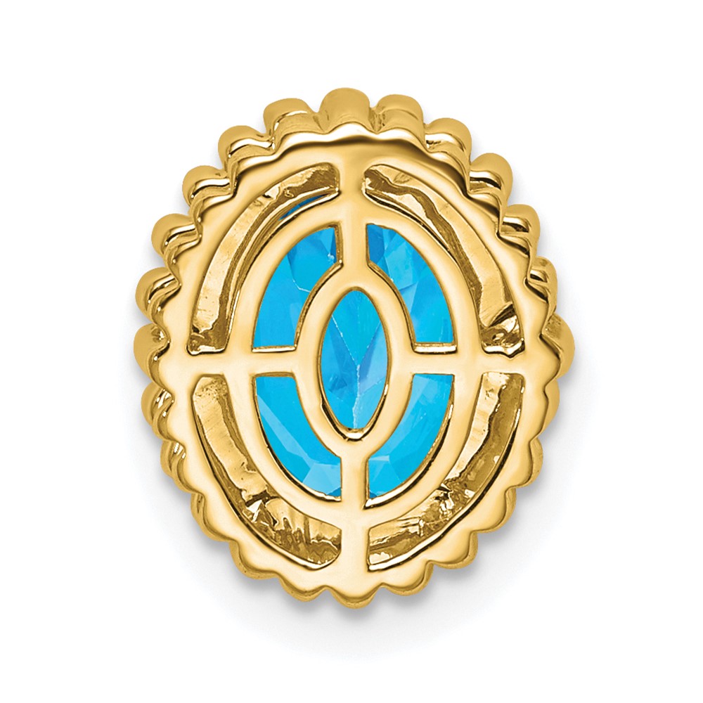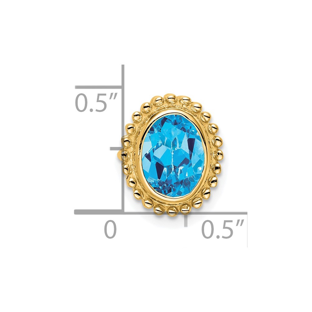 14k 8x6mm Oval Blue Topaz Beaded Edge Chain Slide