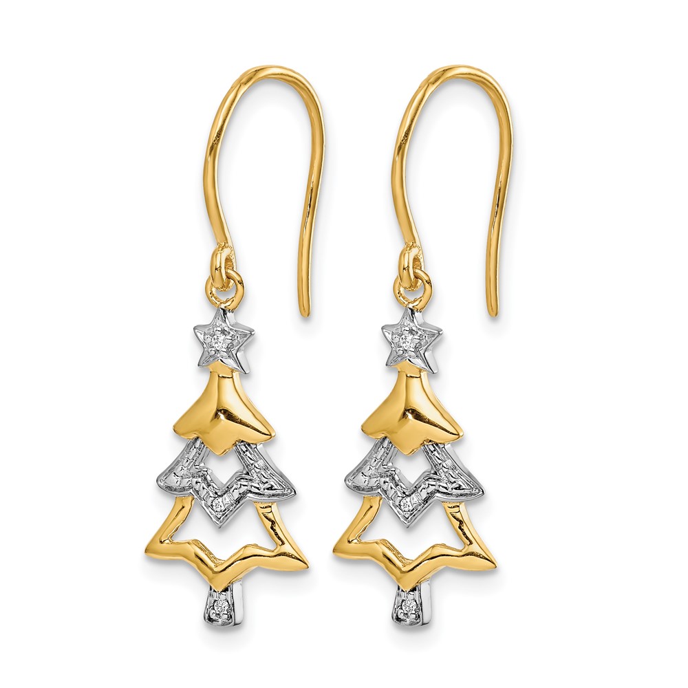 14k and Rhodium Diamond Christmas Tree Dangle Earrings