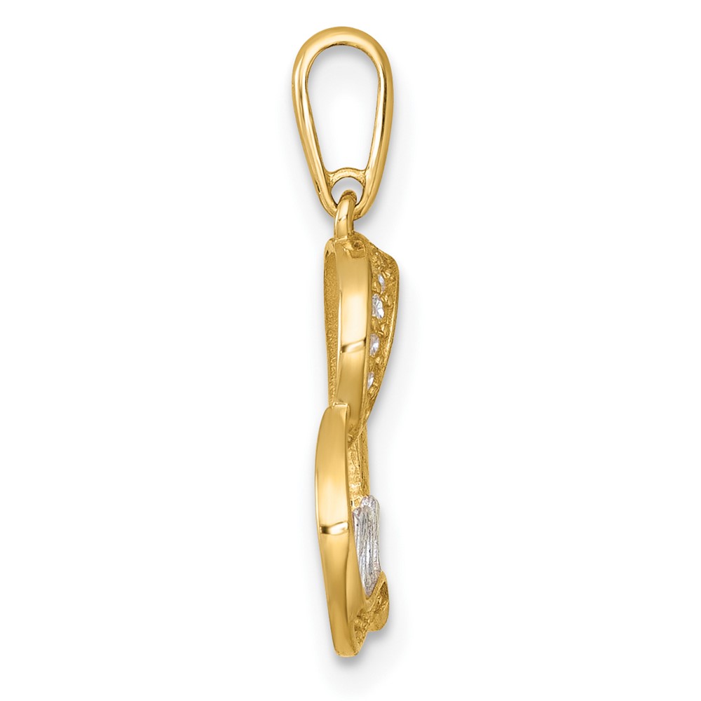 14k and Rhodium Polished White CZ Sideways Open Heart MOM Pendant