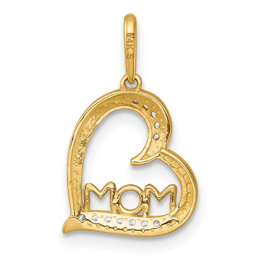 14k Polished White CZ MOM Open Heart Charm