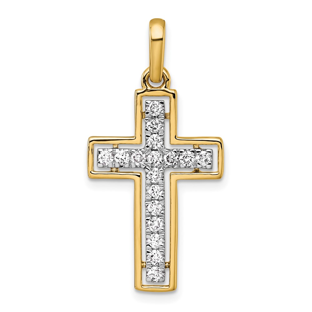 14k and White Rhodium 1/2 carat Diamond Cross Pendant