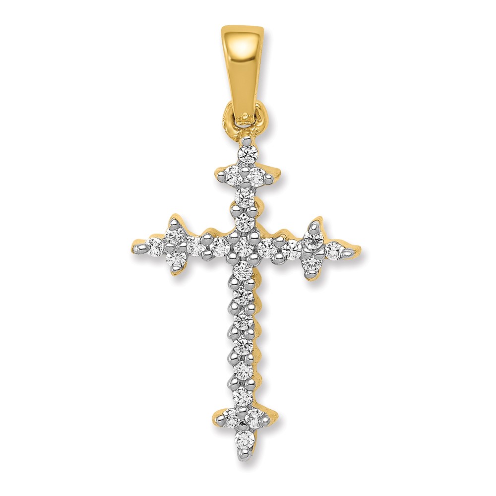 14k and White Rhodium 1/6 carat Diamond Fleur de Lis Cross Pendant