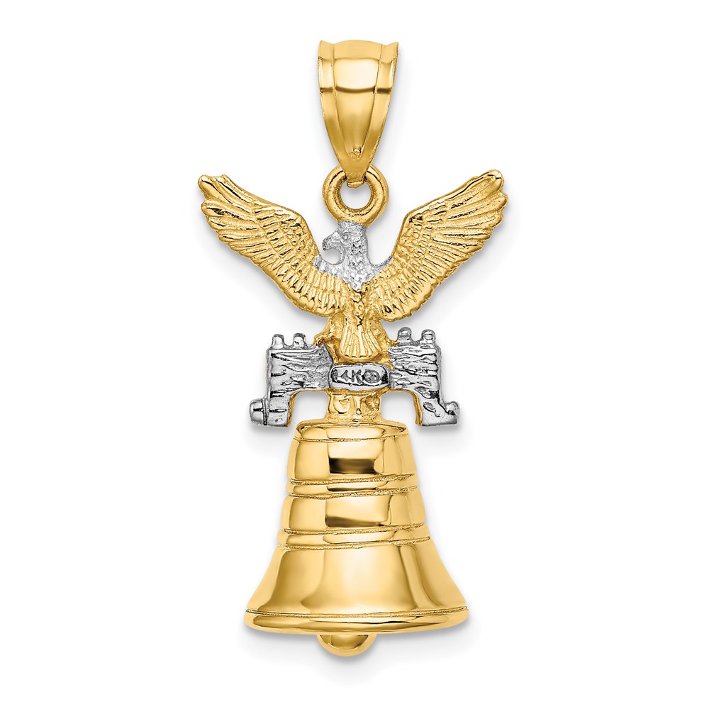 14k and White Rhodium 3-D Liberty Bell with Moveable Clapper and Eagle Top Charm