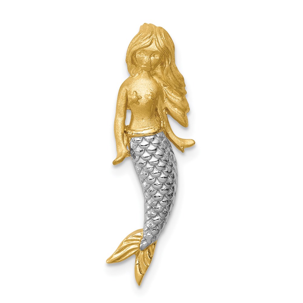 14K and White Rhodium Brushed Mermaid Chain Slide