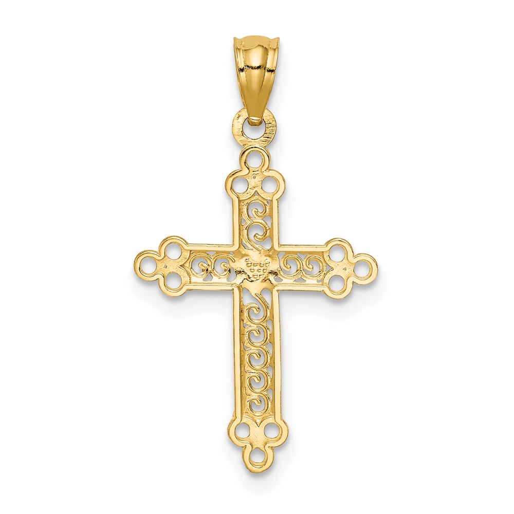 14k and White Rhodium Budded Cross with Heart Center Pendant