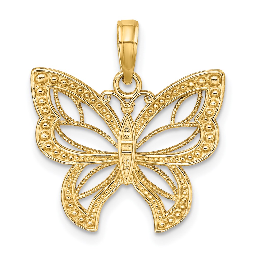 14k and White Rhodium Butterfly with Beaded Wings Charm