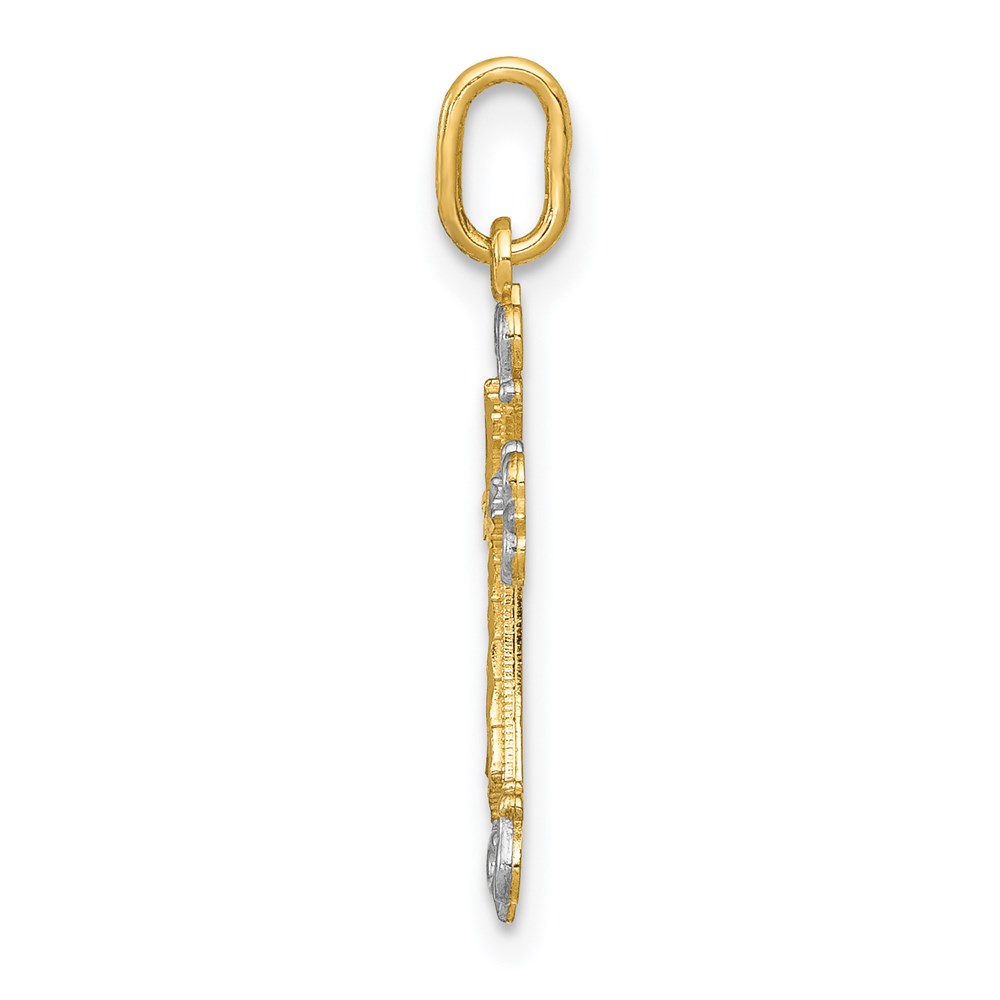 14K and White Rhodium Cross Charm