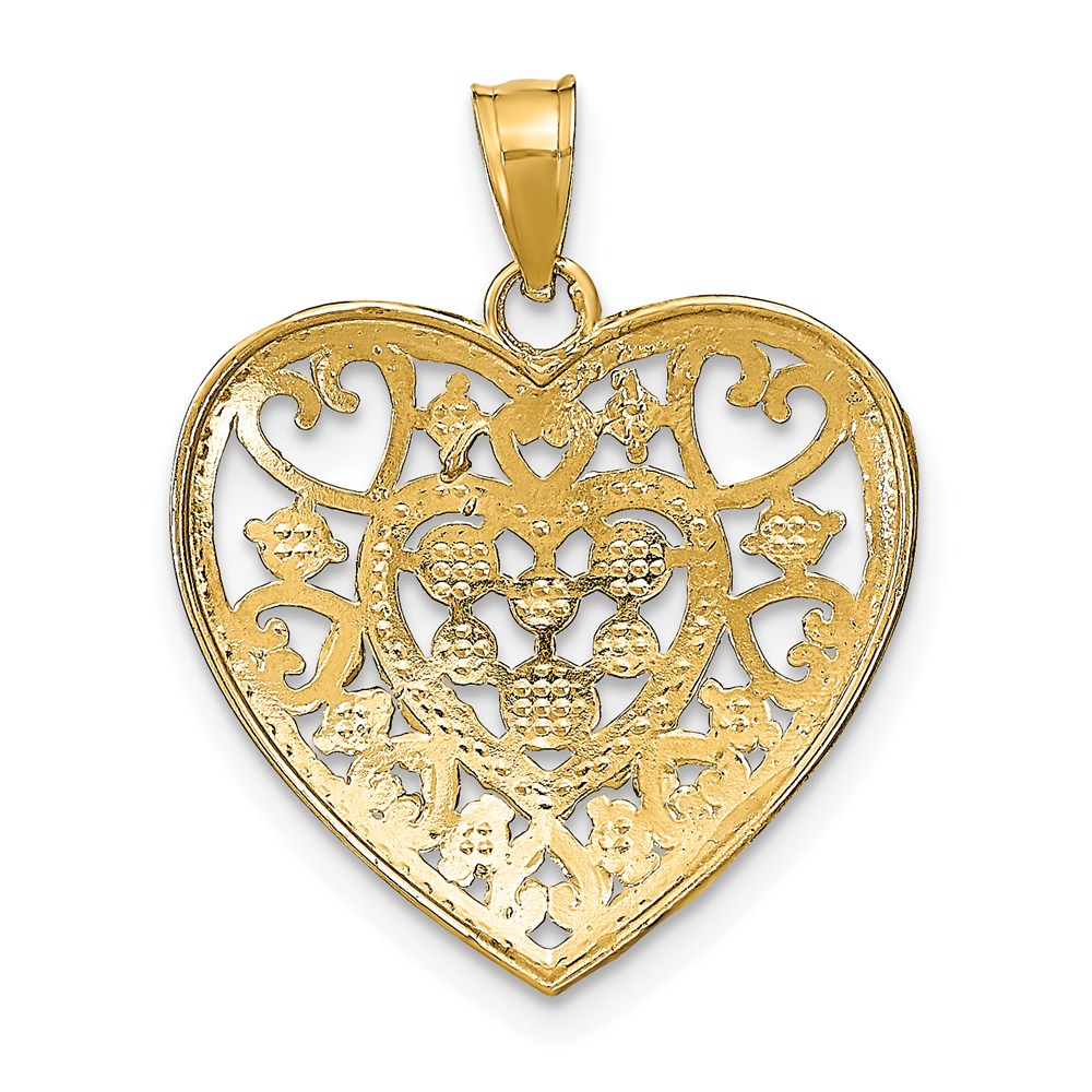 14k and White Rhodium Cut-Out Filigree Heart Charm