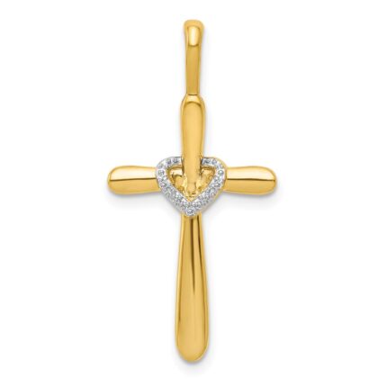 14k White Gold 1/10 carat Champagne Diamond Heart Cross Pendant