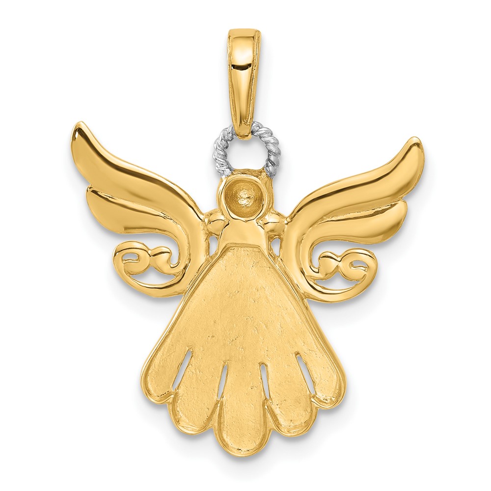 14K and White Rhodium Cut-out Diamond-cut Angel Pendant