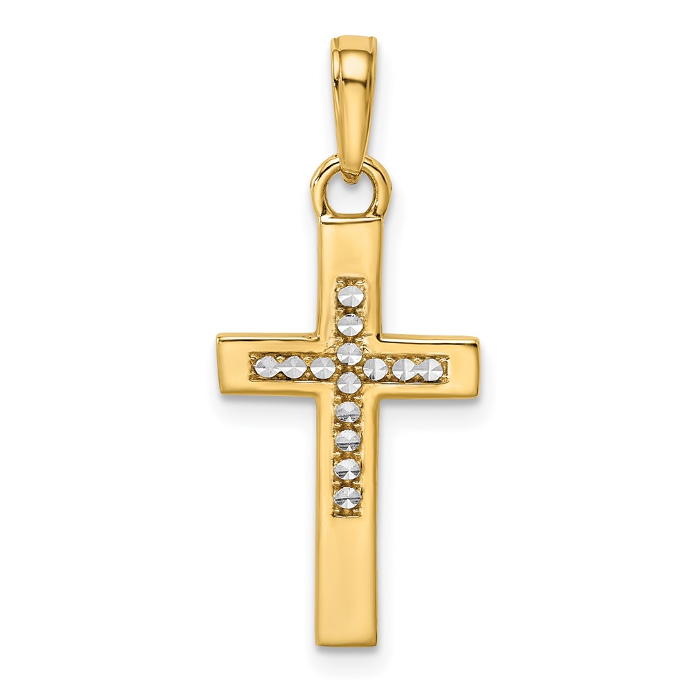 14K and White Rhodium Twist Diamond-cut Cross Pendant
