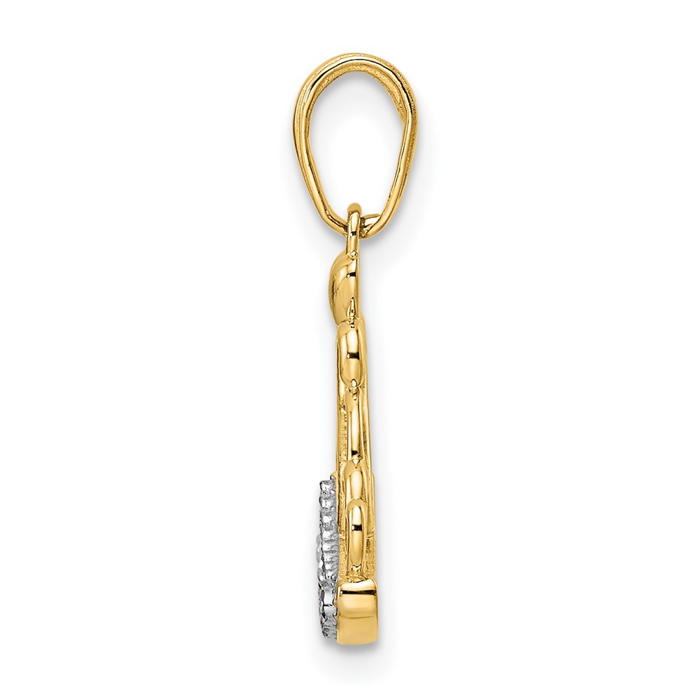 14k and White Rhodium Diamond-cut Crown Pendant