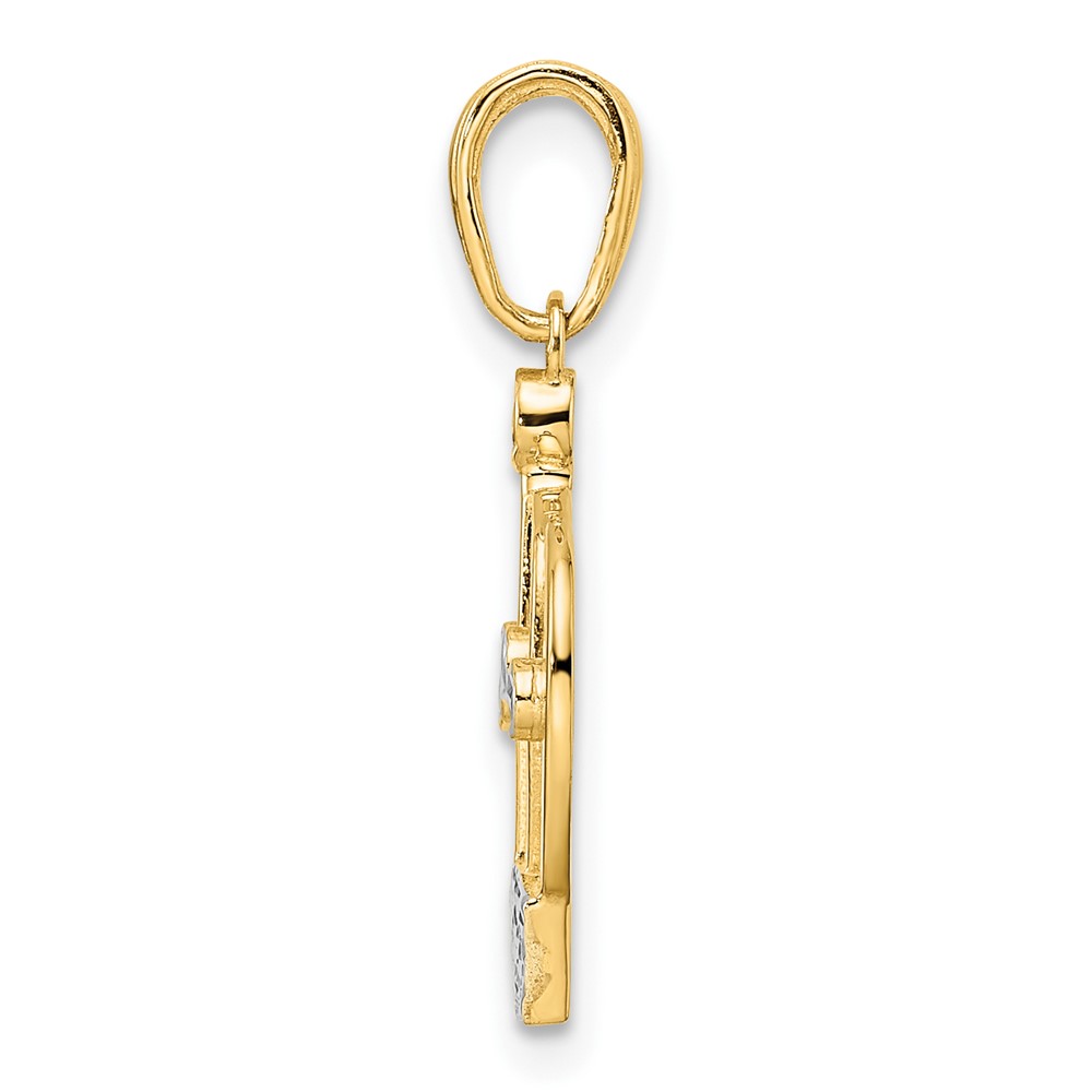 14k and White Rhodium Diamond-cut Crown Pendant