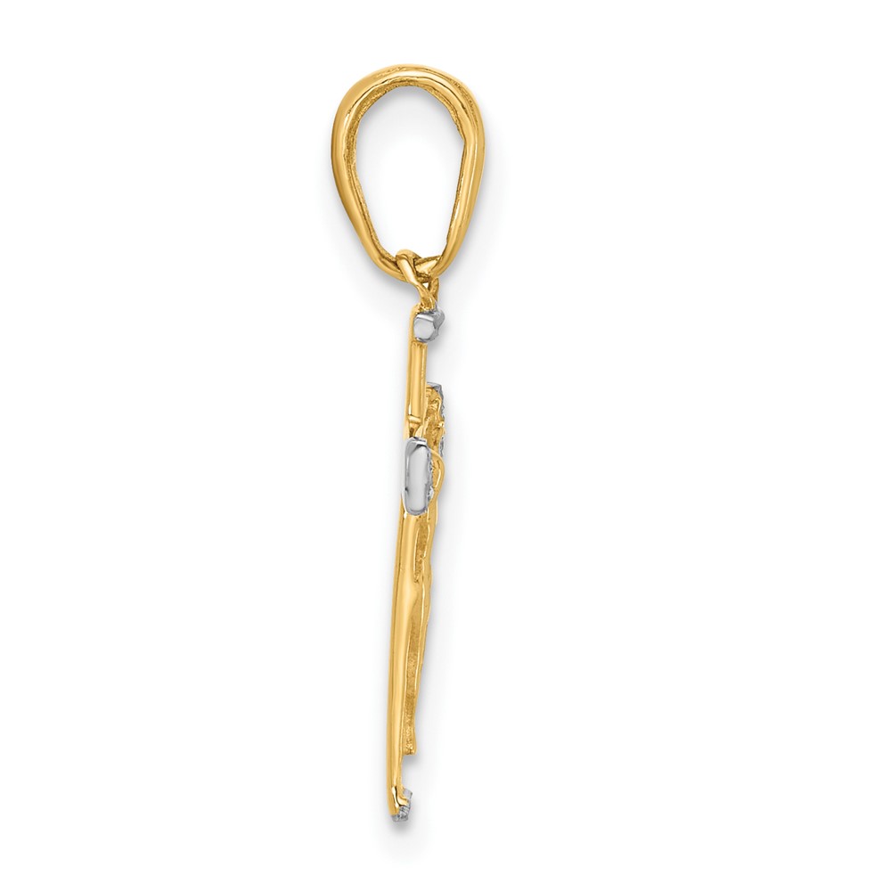 14k and White Rhodium Diamond-cut Crucifix Cross Pendant