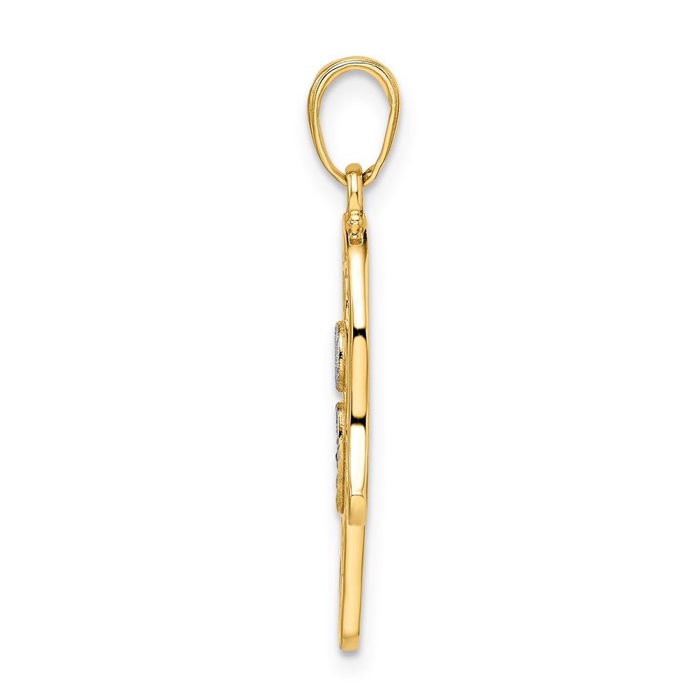 14k and White Rhodium Diamond-cut Evil Eye Hamsa Pendant