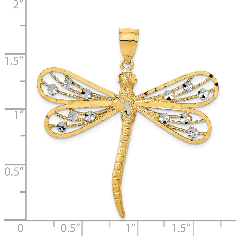 14K and White Rhodium Diamond-cut Filigree Dragonfly Pendant