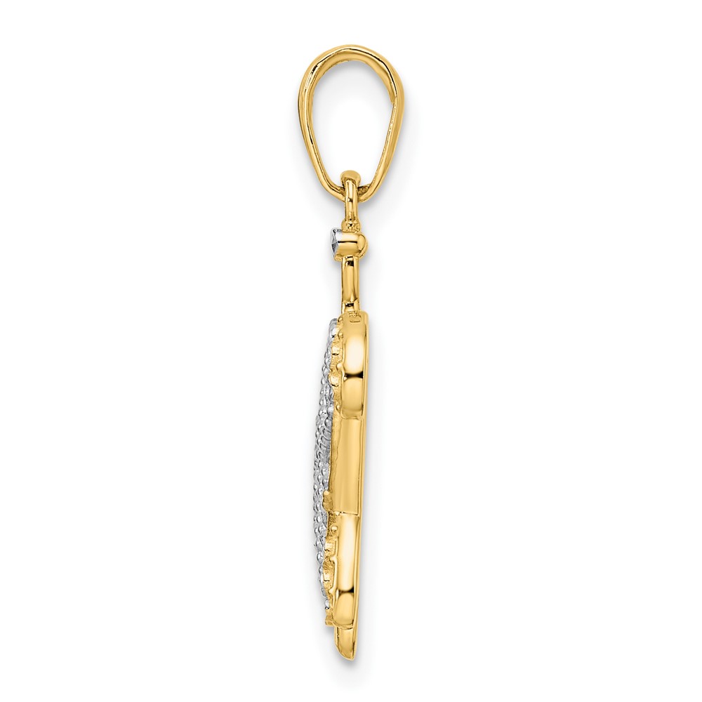 14k and White Rhodium Diamond-cut Filigree Turtle Pendant