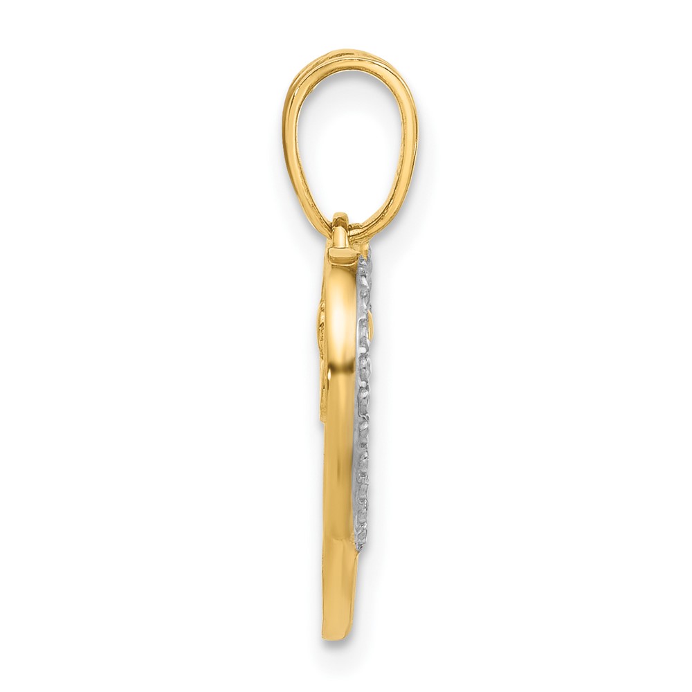 14K with White Rhodium Diamond-cut Hearts and Arrow Pendant