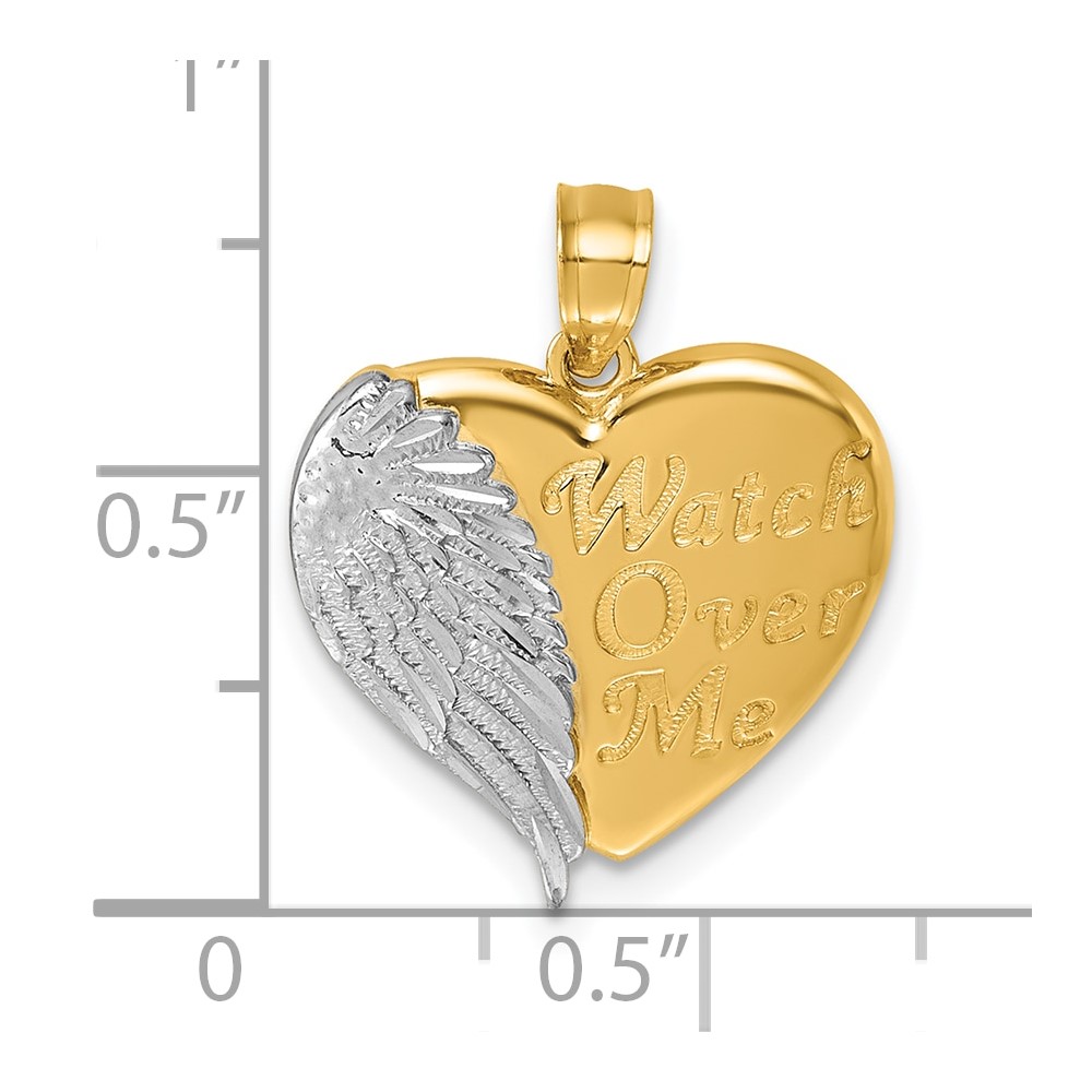14k and White Rhodium Diamond-cut Heart With Wing WATCH OVER ME Pendant