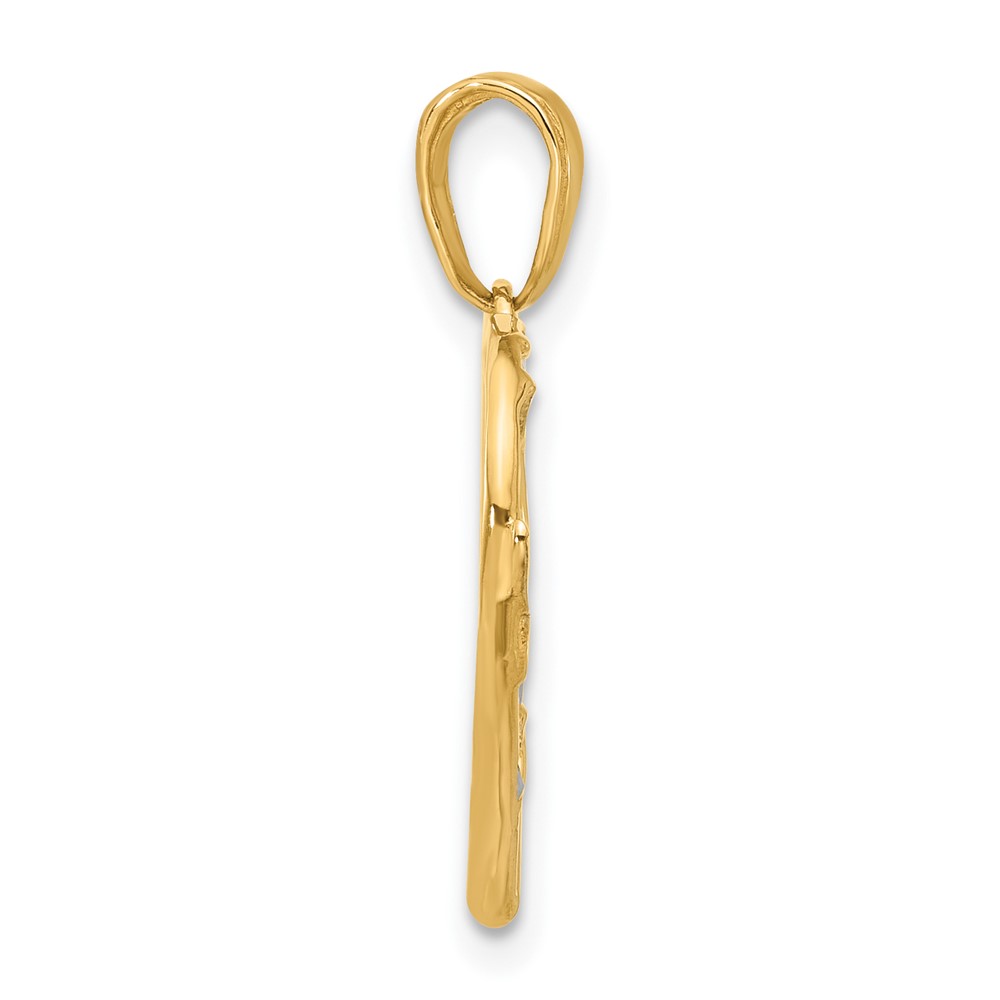 14k and White Rhodium Polished Floral Design Circle Pendant