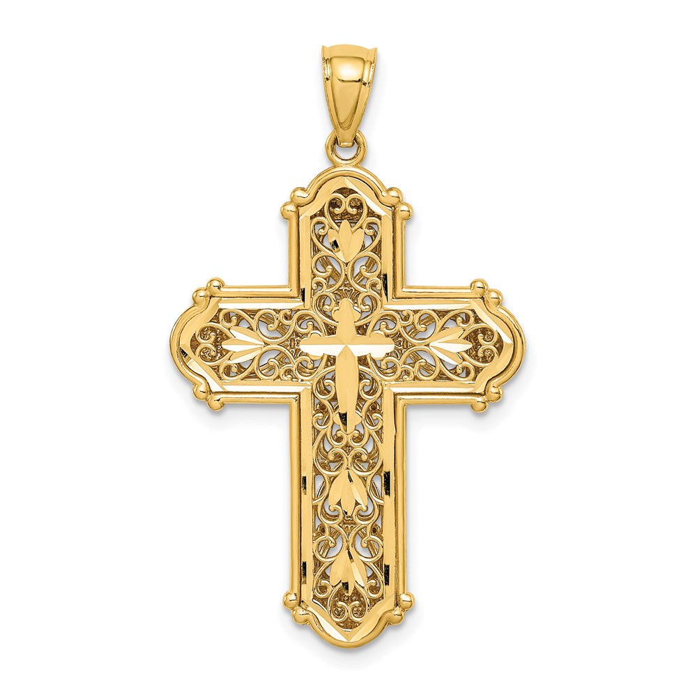 14K and White Rhodium Diamond-cut Reversible Cross Pendant