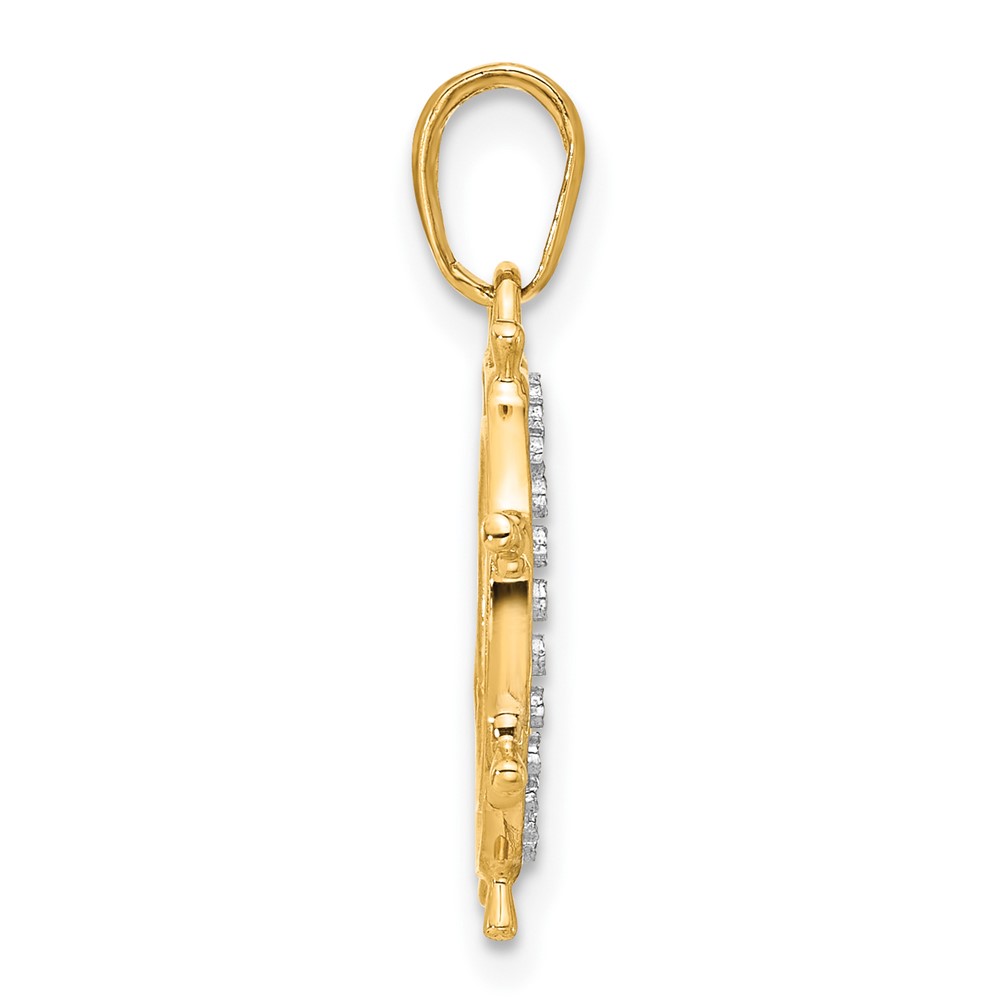 14k and White Rhodium Diamond-cut Ship’s Wheel Pendant