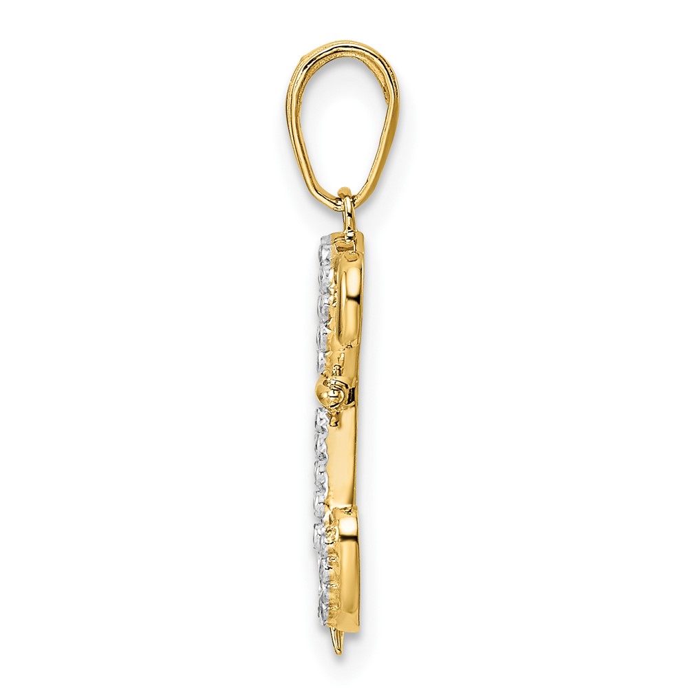 14k and White Rhodium Diamond-cut Cat Pendant