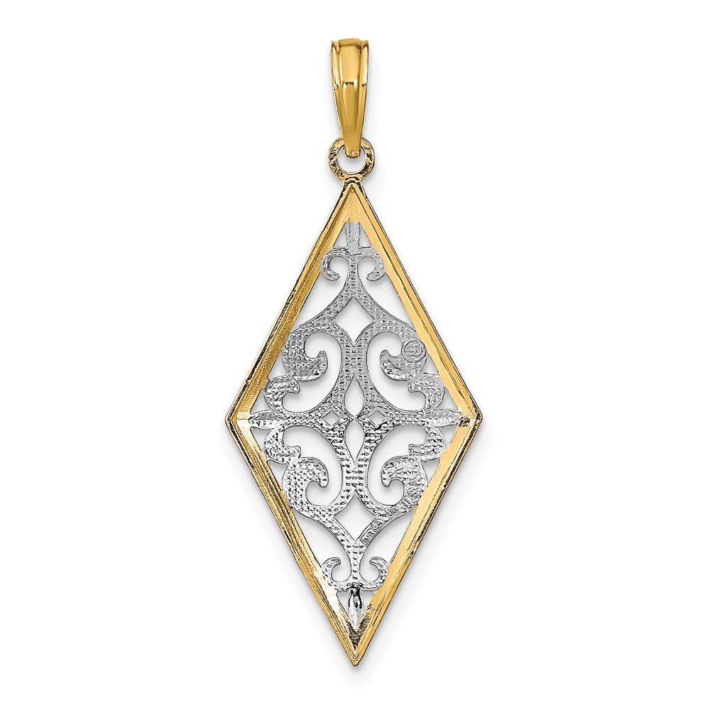 14k and White Rhodium Diamond-Shape Cut-Out Filigree Charm