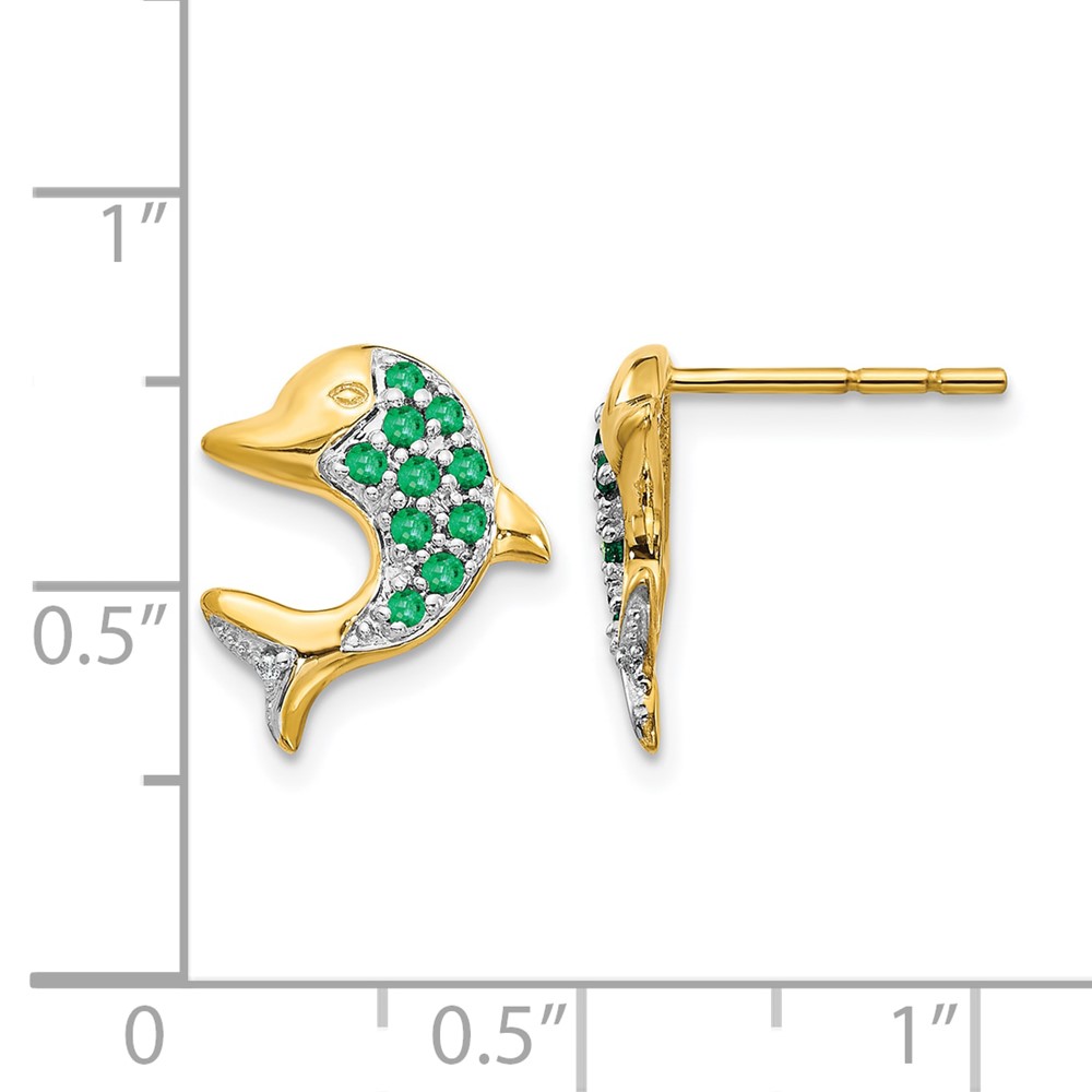 14k and White Rhodium Emerald and Diamond Dolphin Post Earrings