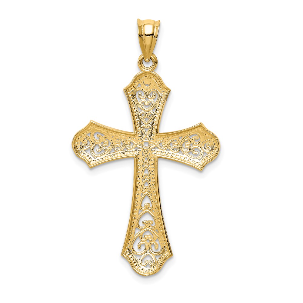 14k and White Rhodium Filigree Cross Pendant