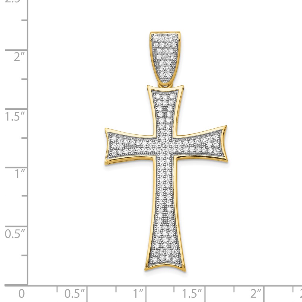 14k and White Rhodium Micro Pav‚ CZ Large Cross Pendant