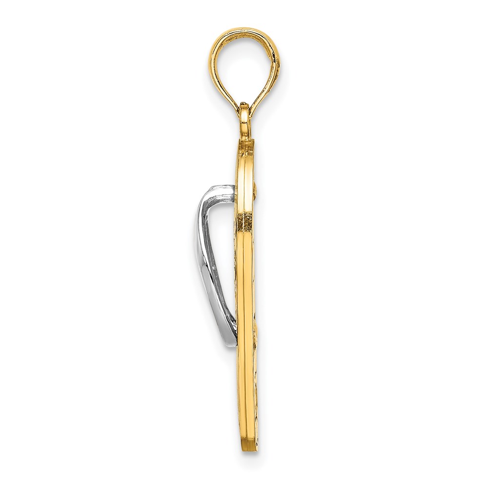 14k and White Rhodium Solid 3-D .01 carat Diamond High Heel Shoe Charm