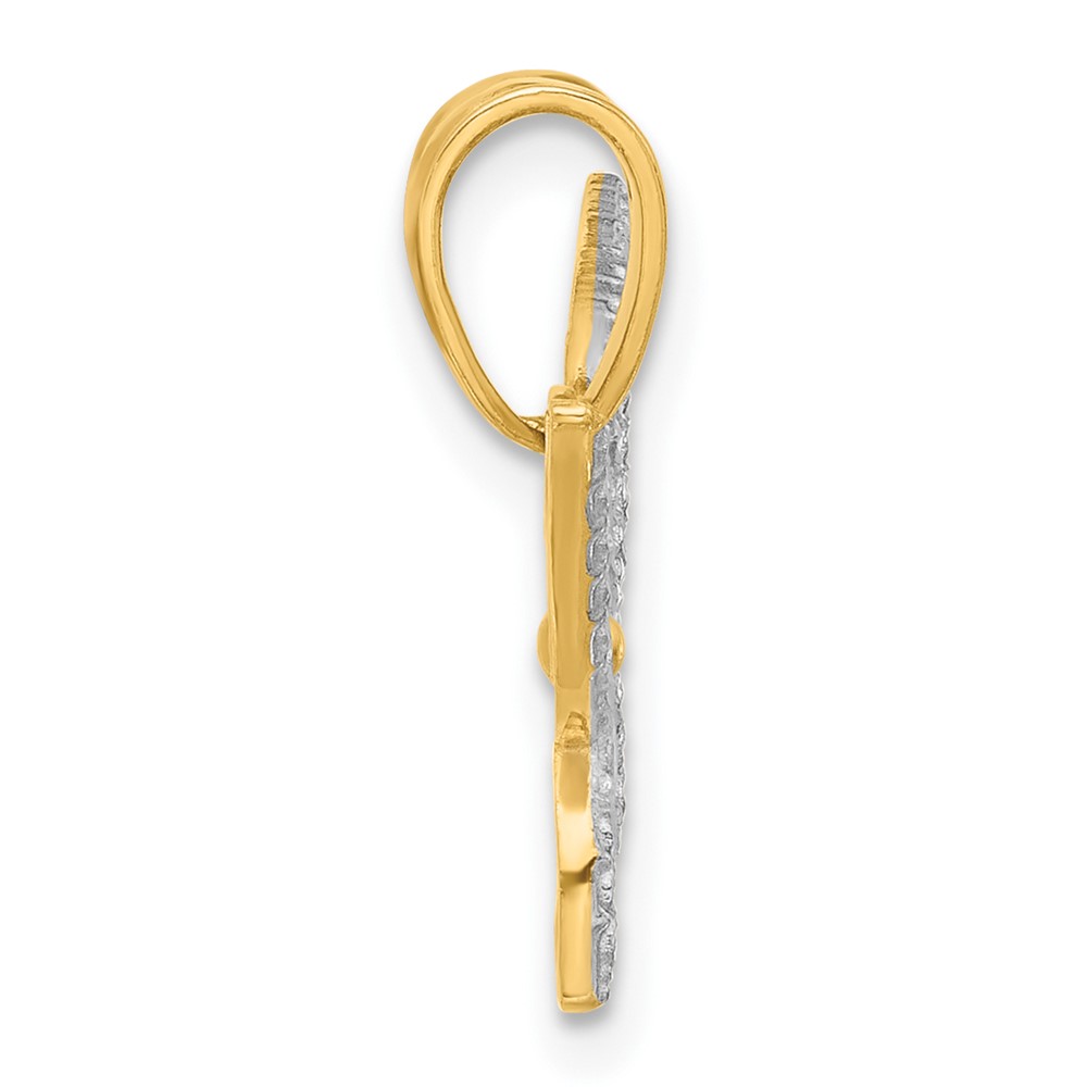 14K and White Rhodium Polished and Diamond-cut Butterfly Pendant