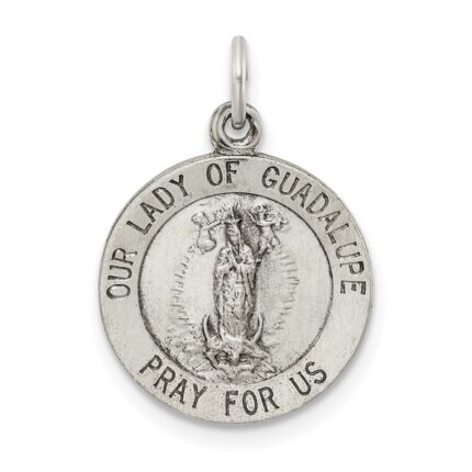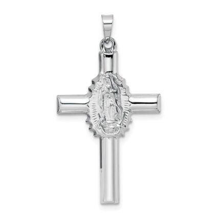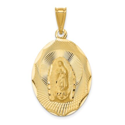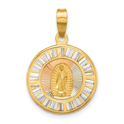 14k and White Rhodium Polished and Satin Hollow Our Lady of Guadalupe Medal Round Pendant