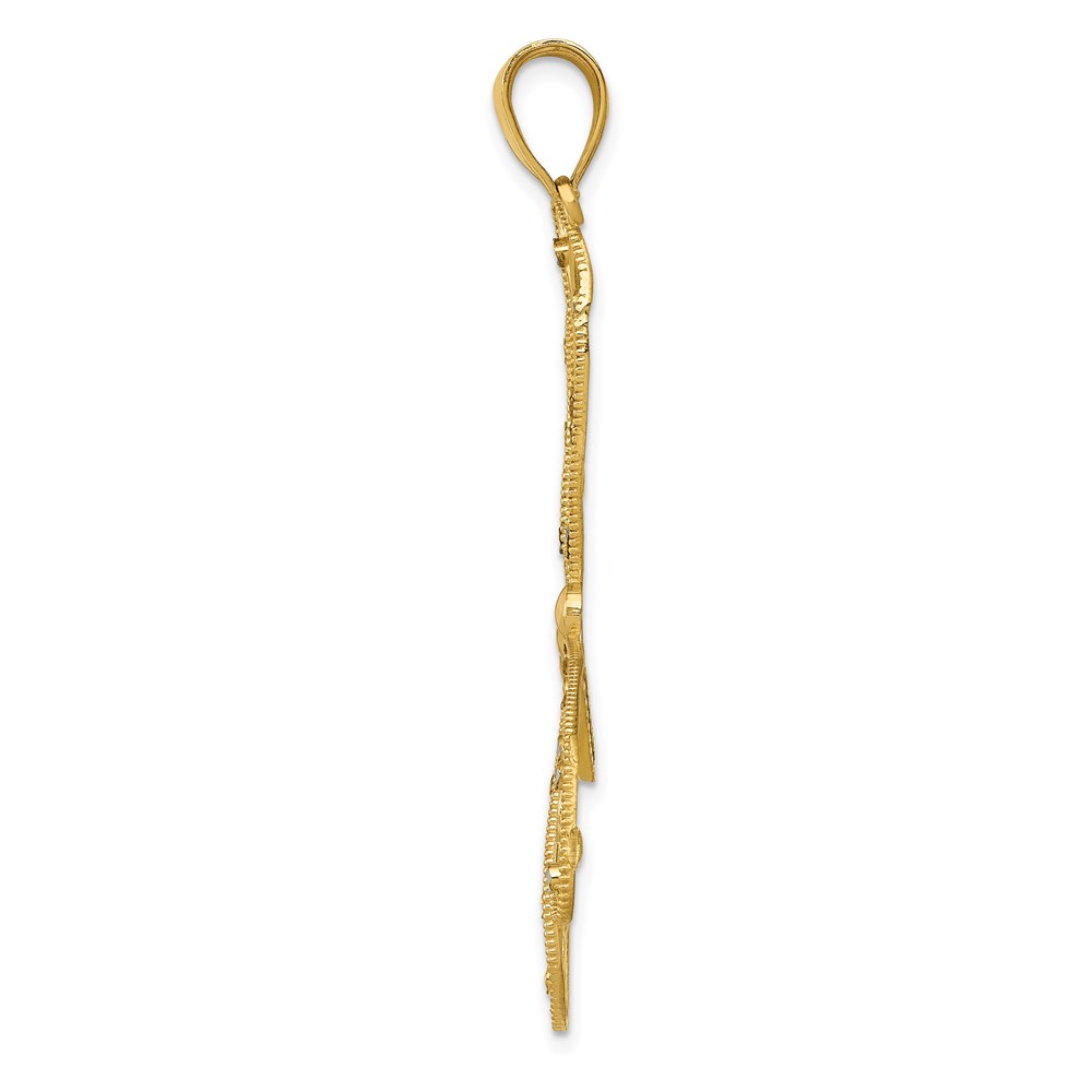 14k and White Rhodium Polished Diamond-cut Filigree Dragonfly Pendant