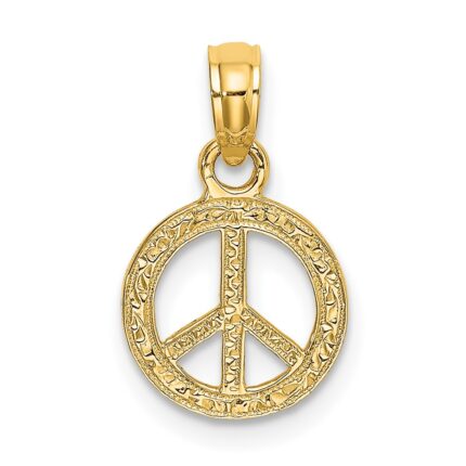 14K and White Rhodium Polished PEACE Dove Circle Pendant