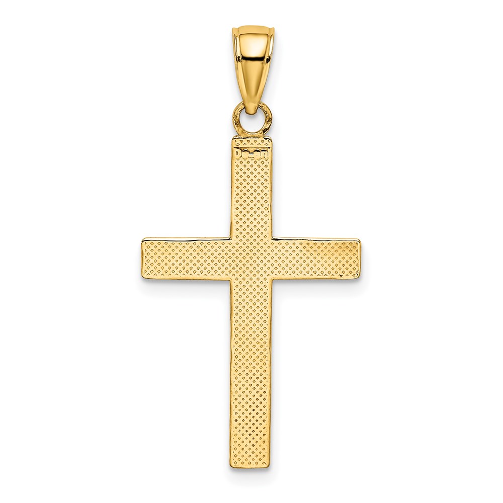 14K and White Rhodium Polished Tubular Cross Charm
