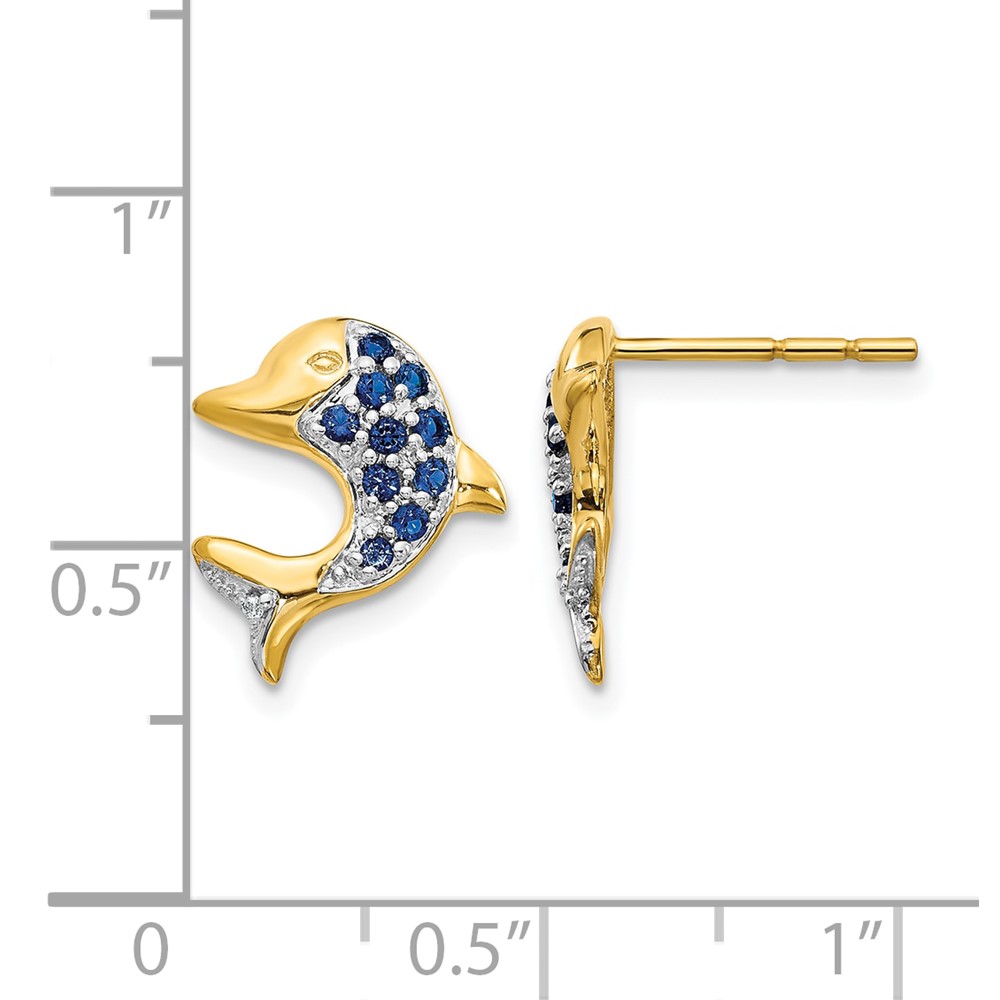 14k and White Rhodium Sapphire and Diamond Dolphin Post Earrings